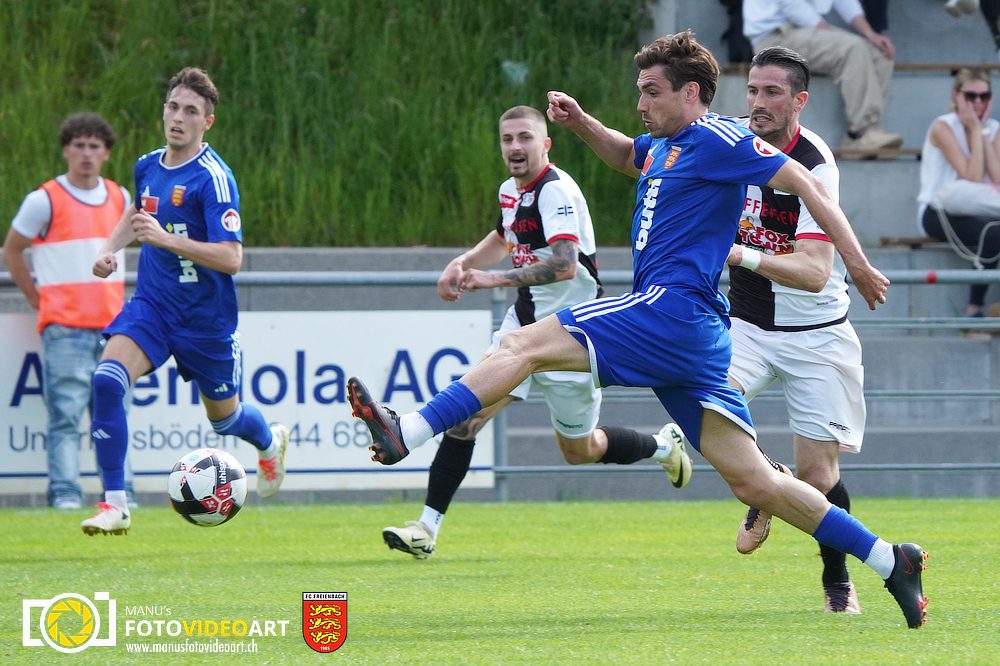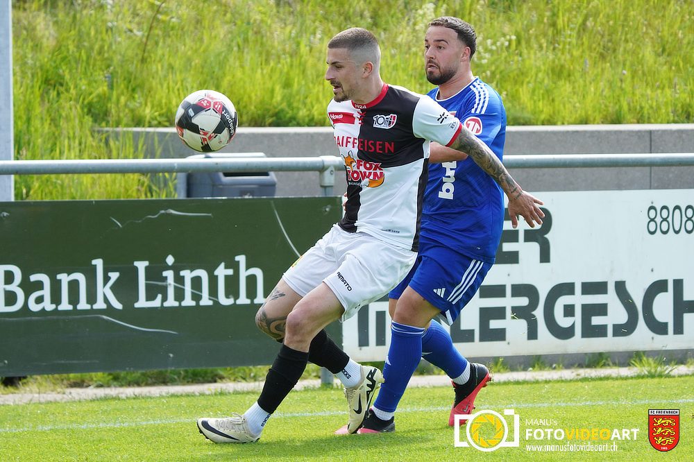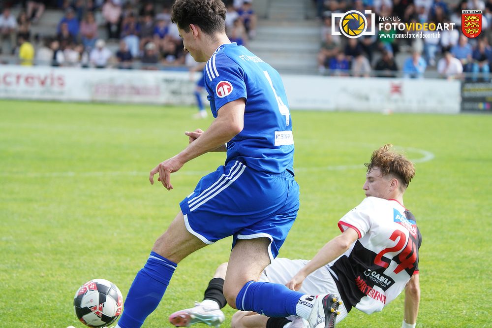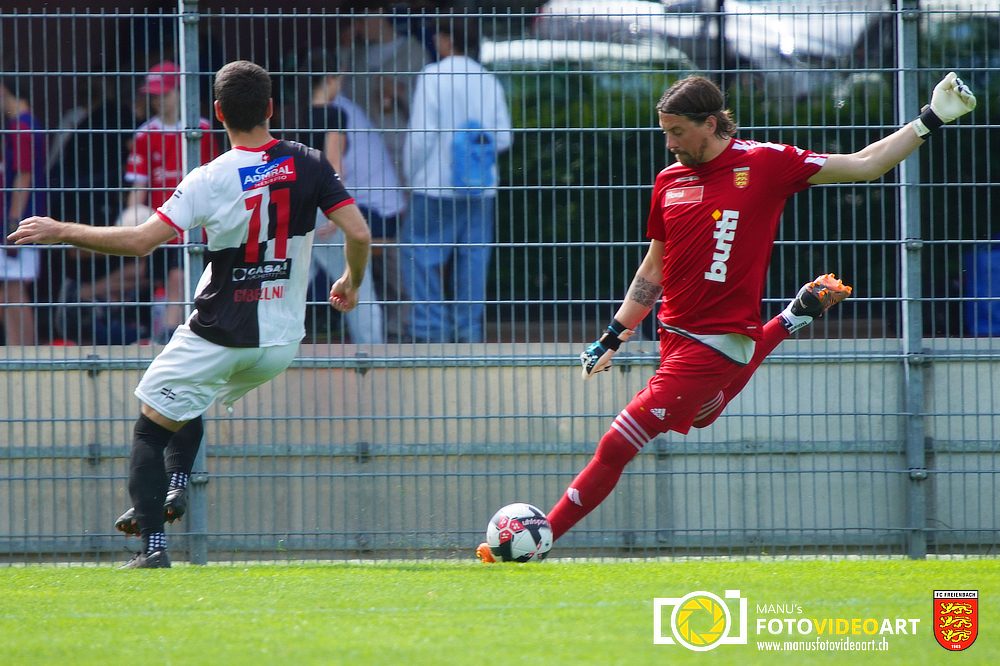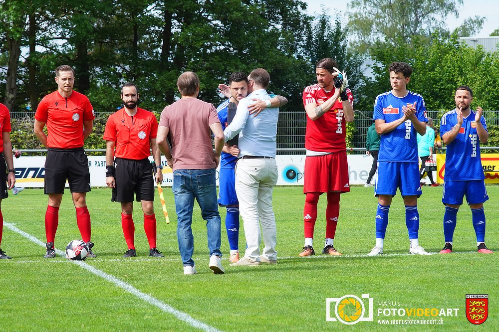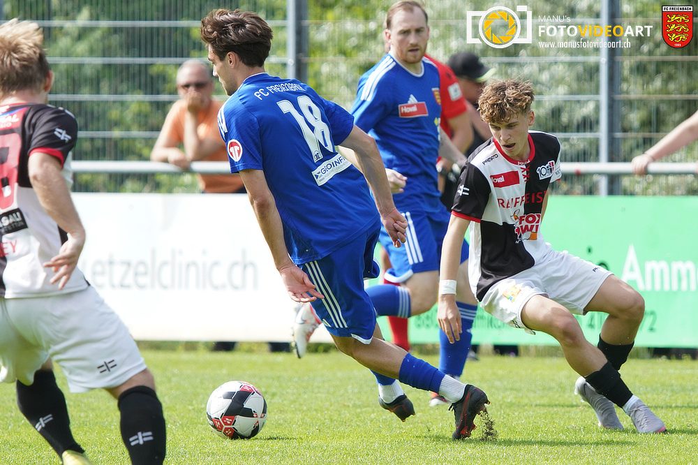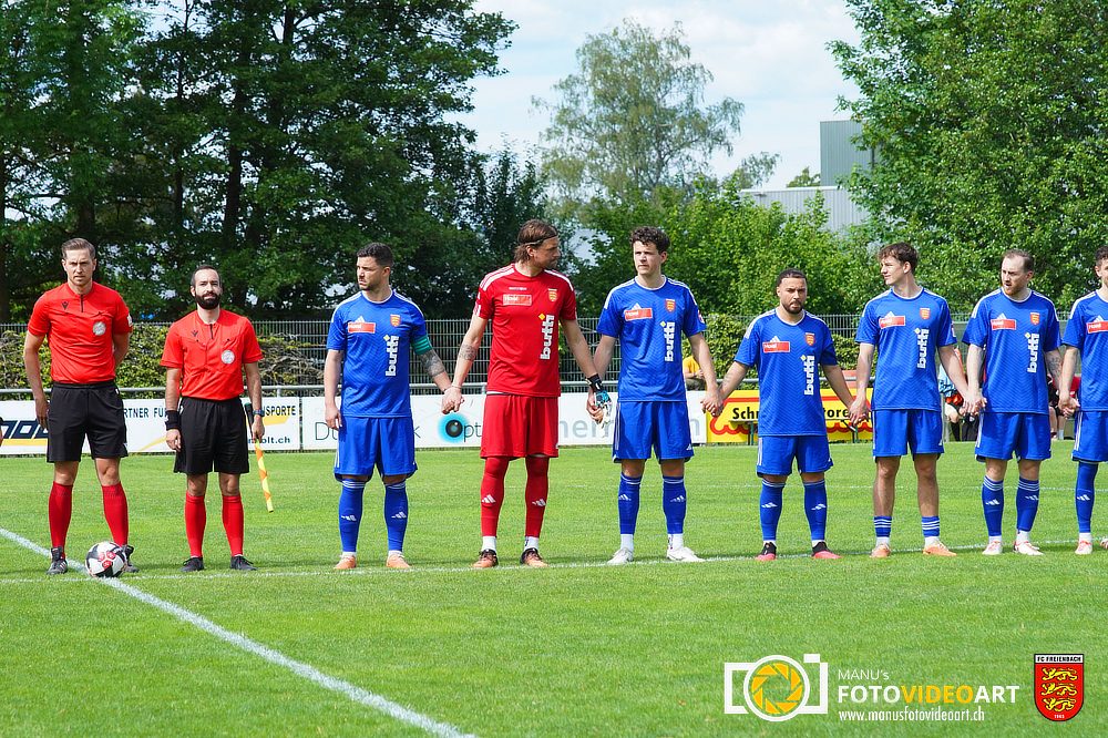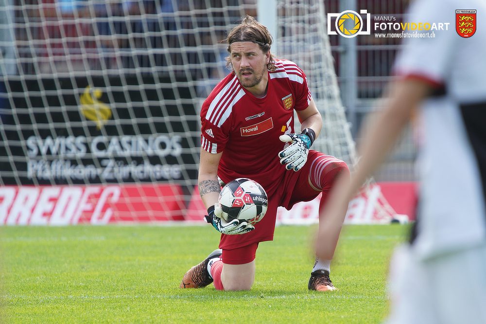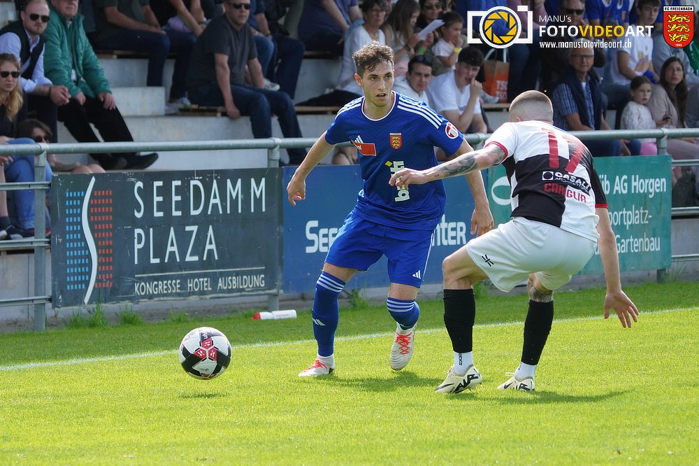 Der erste emotionale Höhepunkt in dieser Partie ereignete sich bereits vor dem Anpfiff. Die beiden langjährigen Freienbacher Akteure Tiago Ribeiro und Aleksandar Radovic bestritten ihr letztes Heimspiel und wurden von den Zuschauern wie auch von FCF-Präsident Benjamin Fuchs und Sportchef Mario Zimmermann mit reichlich Applaus und Präsenten verabschiedet. Wenig später pfiff der Unparteiische Aleksandar Vidic das Spiel an, in dem Freienbach noch einen Zähler brauchte, um endgültig den Verbleib in der Spielklasse sichern zu können. In der Startphase tasteten sich beide Teams zunächst ab mit ersten Möglichkeiten hüben wie drüben. Freienbachs Abwehr bekundete insbesondere mit der Physis von Mendrisios Stürmer Gibellini Probleme, der dann auch die ersten gefährliche Chancen für die Tessiner Gäste vergab. Zuvor hatte Freienbach aber bereits am Führungstreffer geschnuppert, als Luca Straub einen weiten Ball herrlich aus der Luft pflückte und dann schnell abschloss. Doch Mendrisios Keeper Stefan Vidovic verkürzte den Winkel und parierte den Schuss zur Ecke.