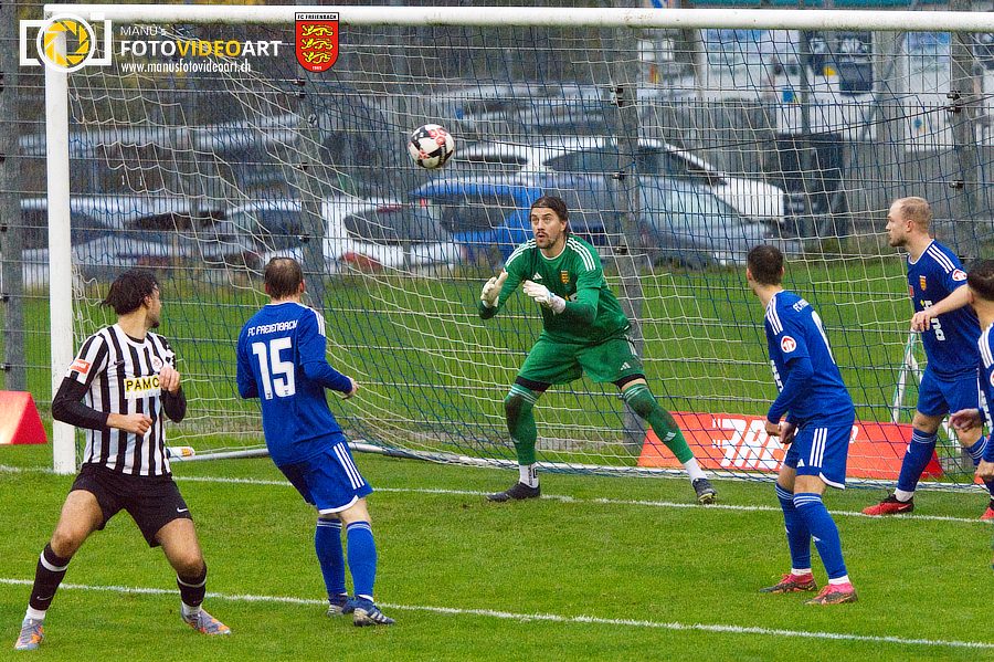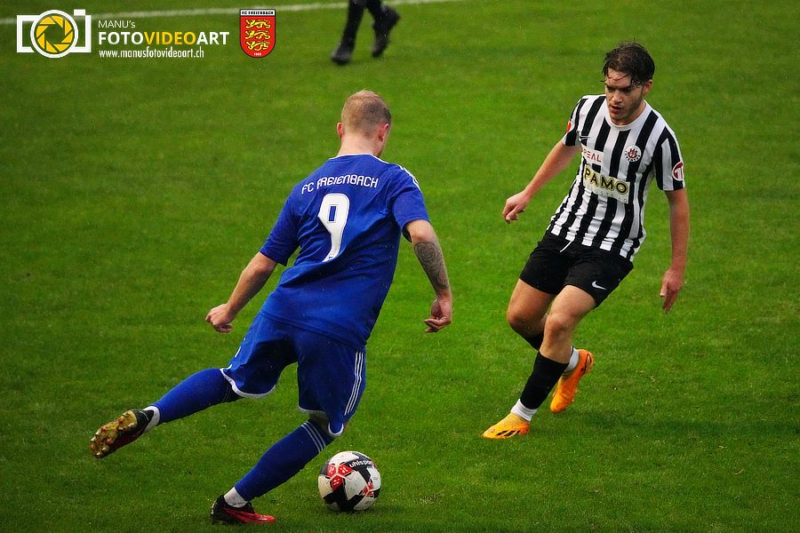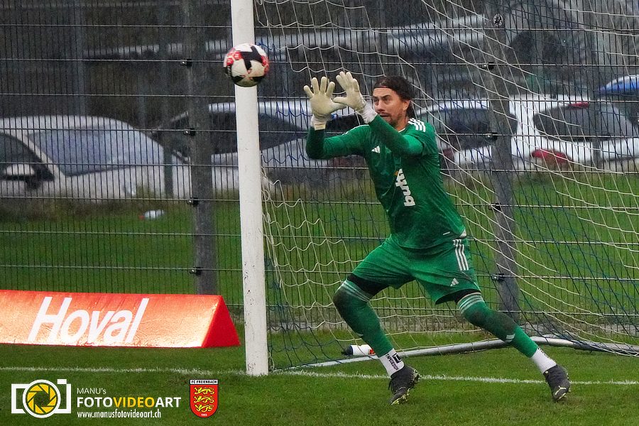 Die Bedingungen auf der Chrummen liessen wahrlich zu wünschen übrig. Das Geläuf präsentierte sich tief, aufgeweicht durch den Dauerregen an diesem kühlen Samstagnachmittag. Dementsprechend trist gestaltete sich dann auch die Freienbacher Startphase. Noch keine zehn Minuten waren vergangen, da zeigte der Unparteiische Henrik Karlsson bereits auf den Elfmeterpunkt. Eine ungestüme Intervention von Cristiano Teixeira hatte einen YF-Angreifer zu Fall gebracht. Liga-Topskorer Patrick Pereira nahm Anlauf, scheiterte aber am blitzschnell reagierenden Diego Yanz. Freienbach erhielt nach diesem emotionalen Höhepunkt für kurze Zeit etwas Auftrieb und fand besser ins Spiel. Insbesondere die linke Seite mit Aussenverteidiger Robin Bieli machte Dampf. Bieli suchte immer wieder seine in der Mitte postierten Mittspieler, deren Versuche wurden aber zumeist geblockt. Die beste Gelegenheit für Freienbach vergab Silvan Gönitzer, der nach einem Eckball am langen Pfosten völlig freistand, davon aber selbst etwas überrascht schien und zu spät reagierte.