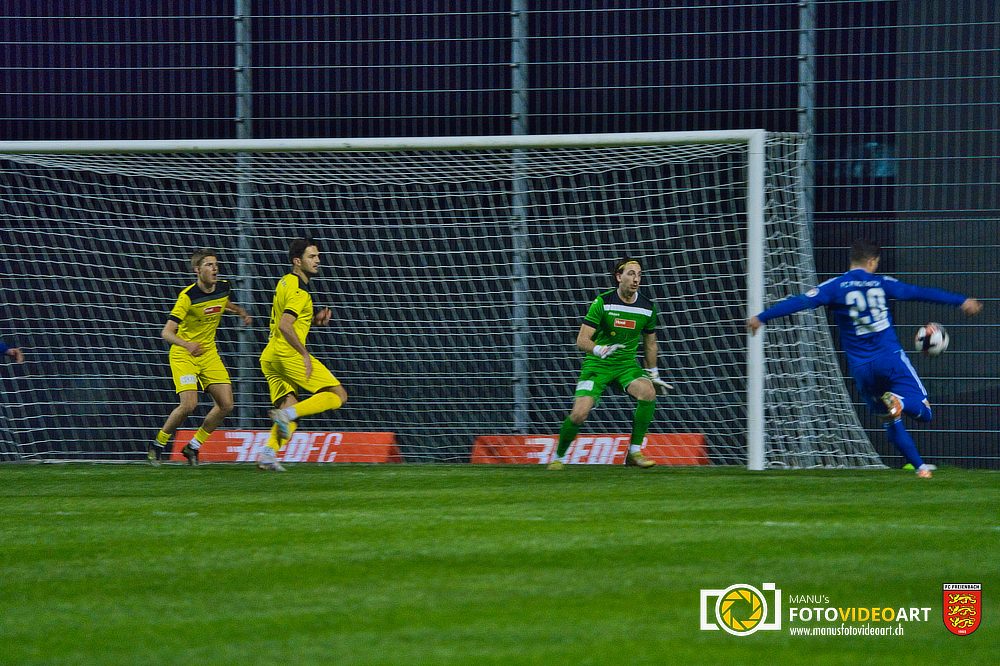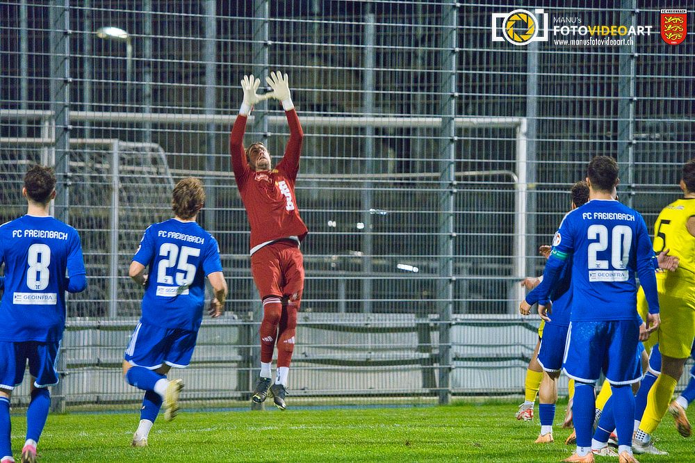 Im Gegensatz zum letzten Auftritt auf heimischem Geläuf fand sich Freienbach von Anfang an auf dem holprigen Rasen auf der Chrummen gut zurecht. Bereits in der sechsten Spielminute setzte Aussenverteidiger Spiniello den schnellen Straub gekonnt ein. Der heute als Mittelstürmer agierende Angreifer scheiterte mit seinem Abschluss aber an Linths Keeper Feusi. Ebendiese beiden Akteure standen dann wenige Zeigerumdrehungen später erneut im Mittelpunkt – und dies gleich doppelt. Zuerst schlug Feusi nach einem eigentlich harmlosen Rückpass über den Ball, wovon Luca Straub profitierte. Nachdem er einen zurückeilenden Verteidiger stehen gelassen hatte zog er aus rund 15 Metern ab, doch Feusimachte seinen Fehler wieder gut und klärte gekonnt zum Corner. Dier gleich anschliessende Eckball sorgte dann zum dritten Mal für Gefahr vor dem Gehäuse der Glarner. Freienbachs Innenverteidiger Ribeiro fiel der Ball vor die Füsse, wovon er aus kürzester Distanz aber nicht profitieren konnte.